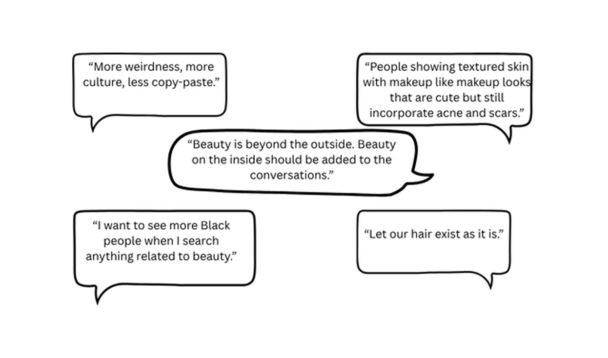 I wanted answers. So, I asked 30 people — neither industry insiders nor experts, but rather everyday individuals (primarily women of color in their 20s) to share what came to mind when beauty met technology. No jargon. No performative marketing speak, just absolute truths, frustrations, and hopes. We talked about beauty filters, AI routines, representation gaps, and the future of self-expression.